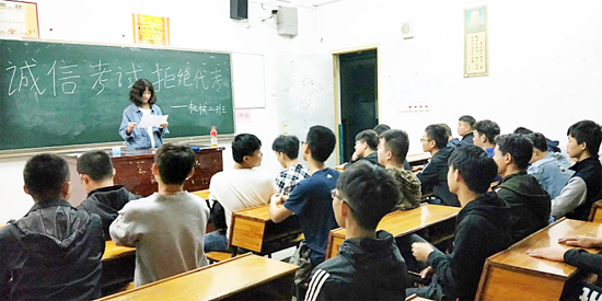 活动前期,能机院学生会召集全院各班班长及学委进行了相关培训;分管辅导员邓景文提出了明确要求,希望各位同学能增强诚信意识,培养诚信品质,拒绝一切违法作弊及替考行为。在下午的各班主题班会中,各班班长为全班学生详细解读了《普通高等学校学生管理规定》以及《中华人民共和国教育法》中的相关内容,强调了替考的危害性和处罚的严重性,并倡导学生从自身做起,严格要求,用实际行动营造良好的学风、考风,塑造新时代大学生形象。(邓景文供稿)