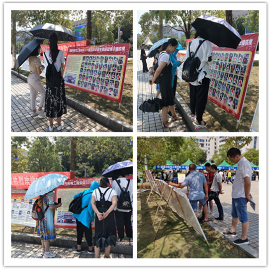 (开学报到当天,通过优秀毕业生事迹展、新录取研究生风采展,对新生开展学习励志教育)