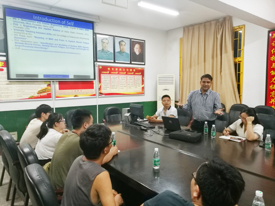9月5日晚,能源与机电工程学院和国际合作与交流处联合举办的学术报告会在若谷楼205举行,KY官网新进高层次人才Parmod Kumar博士做了题为“假手表面肌电信号(sEMG)的数学建模与参数辨识”的讲座,能源与机电工程学院院长谢常清、国际合作与交流处副处长黄敏以及全校相关专业的博士、硕士生代表参加会议。会议由能源与机电工程学院副院长胡东主持。