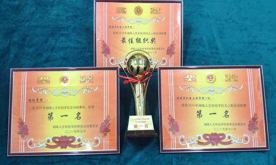 能源与机电工程学院2019年度足球赛“大满贯”奖状、奖杯