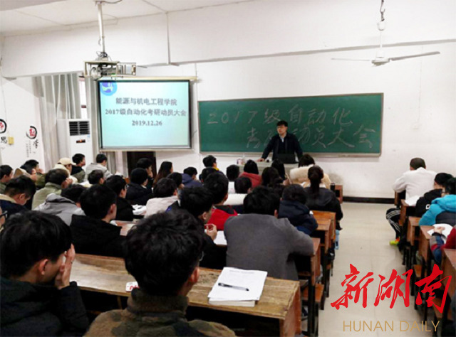 近年来,能机学院重视考研工作。自新生进校之初,该学院便通过入学教育及专业导读等形式,积极引导学生做好中长期学业规划和职业生涯规划。此后,学院通过考研动员会、考研经验交流会等活动,分专业进行了全方位的宣传发动,该院党总支书记彭辉亲自做考研动员报告,帮助同学们树立远大理想,做好职业规划。对于已经确定考研的学生,该学院组建了QQ群、微信群等考研平台用以交流、分享和协调各种考研信息资源,给每位考生都安排了一位高学历、高职称且具有丰富教学与考研辅导经验的教师为考研导师,为学生提供智力支持。同时,在备考期间,该学院给每位考研学生都安排了一位辅导员作为心理疏导员,及时与之线上线下交流,为其提供必要的心理疏导和精神支持。