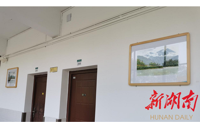 (同德楼二层办公区走廊悬挂学生书画作品)