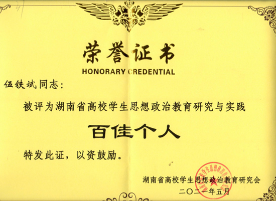 近日,从湖南省高校学生思想政治教育研究会和湖南省高校辅导员工作研究会传来喜讯,能源与机电工程学院伍铁斌、肖毅两位老师分别获评2020 年湖南省高校学生思想政治教育研究与实践百佳个人和2020 年湖南省高校辅导员工作研究与实践百佳个人荣誉称号。