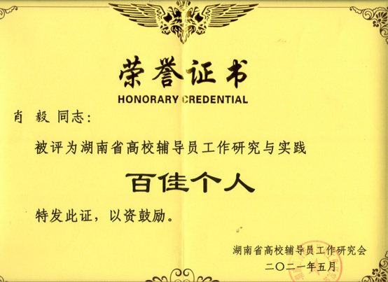 肖毅:男,中共党员,在读博士,自2009年12月起,一直坚守在辅导员岗位上,先后担任过学院招就专干、学生党支部书记、团总支书记、学工办主任等职。肖毅老师信念坚定、敬业奉献,将热心、爱心、细心、耐心、责任心的“五心”工作原则贯穿始终,服务于学生成长成才。担任学院团总支书记期间,学院团总支获评2018年度湖南省“五四红旗团总支”,2017年度娄底市“五四红旗团总支”荣誉称号。2020年湖南省第二批“三全育人”综合试点改革院(系)项目主要参与人,主持了湖南省辅导员专项课题等7项省、校级思政科研项目,参与思政课题3项,发表思政论文3篇;先后获评湖南省暑期“三下乡”优秀指导者、湖南省高校辅导员研究与实践先进个人、湖南省高校消费扶贫营销大赛优秀指导老师、娄底市“优秀共青团干部”、学校“优秀党务工作者”、“优秀共产党员”、“学生管理工作先进个人”等荣誉称号;2020年被推选参评湖南省“向上向善好青年”和湖南省辅导员年度人物;2019年辅导员工作优秀事迹被湖南日报《新湖南》、《华声在线》、KY开元集团官网入口官微等媒体报道。