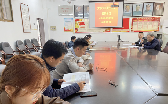 10月12日下午,学院全体领导、党总支委员、各党支部书记在同德楼306开展了第六周二级中心组政治学习。会议由党总支书记谢常清主持,由党总支副书记石海领学。