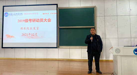 胡东院长强调将为考研学生升学深造提供良好的学习环境和全方位的指导。,他号召同学们要早谋划、早准备,要全心备考、科学报考、沉着应考。希望同学们早日成为国家的栋梁之才。