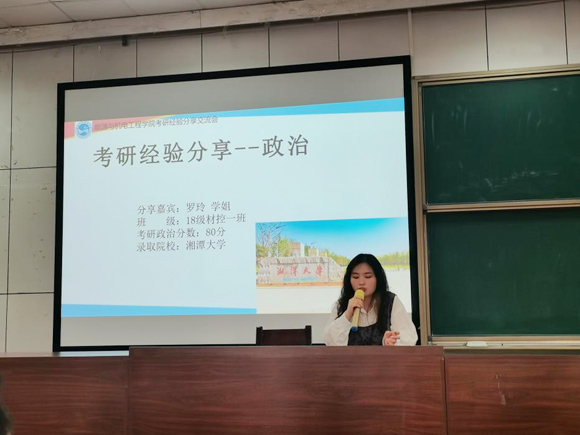 邱丹同学在材控、能动专场做考研经验分享(学校选择、各科复习、心态调整、复试心得等)