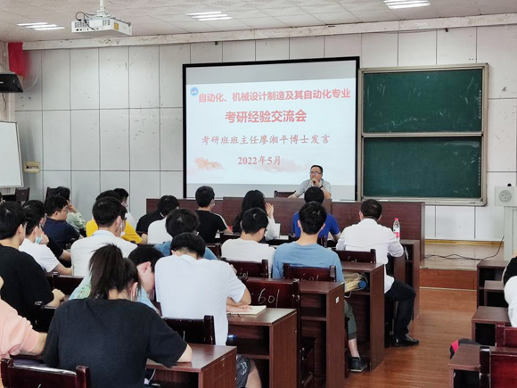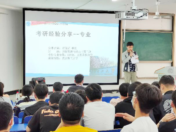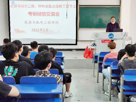 为进一步帮助2019级学生更好地了解考研事宜,解决学生备考期间遇到的困惑,增强学生考研信心,坚定努力拼搏的信念,2022年5月初,能源与机电工程学院考研经验交流会在致远楼320和同德楼601教室教室举行。院长胡东、副院长伍铁斌、考研班班主任廖湘平博士、辅导员戴建利、2019级全体考研学子、2018级已考取研究生优秀代表参会。