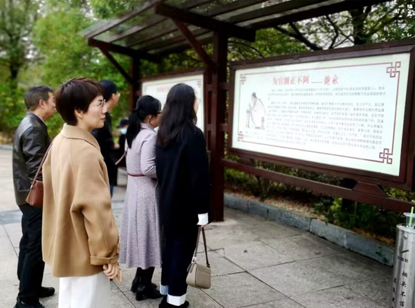 11月19日下午,全体党员赴廉政广场,认真学习廉政广场宣传栏的先进人物的清廉事迹及廉政建设的相关文件。副院长兼教工第一党支部书记伍铁斌说:“通过学习这些清廉事迹,我希望廉洁教育能吸引到更多的同学参与进来,廉洁是一种坚强不屈的意志力量,廉洁是一种永不衰竭的道德力量,廉洁是一种榜样力量,让我们端正廉洁品行,树立积极的价值观,始终保持青年自身的蓬勃朝气。”