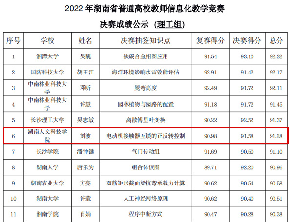 近日,2022年湖南省普通高校教师信息化教学竞赛决赛圆满落幕,能源与机电工程学院刘波老师从全省52所高校的156名参赛者中脱颖而出,荣获信息化教学竞赛工科组第6名的好成绩,并获得一等奖。