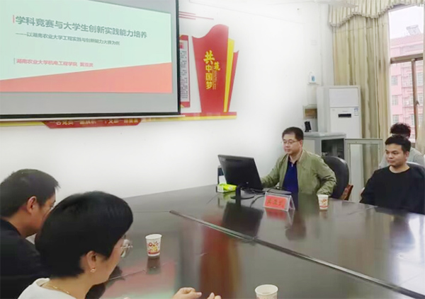 4月14日下午,湖南农业大学机电工程学院副院长莫亚武在KY官网作了题为“学科竞赛与大学生创新实践能力培养”的学术报告。讲座在同德楼306会议室举行,由副院长伍铁斌主持,学院领导班子、学科竞赛指导老师以及有意参加学科竞赛的学生参加讲座。