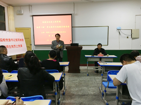2016年5月26日,学校党委书记郭军教授在若谷楼402为能机院全体师生党员上了一堂党课。郭书记围绕“两学一做”学习教育的重要意义、“讲政治、有信念”的基本内涵和要求、为什么要强调“讲政治、有信念”、师生党员如何做到“讲政治、有信念”四个方面深入浅出地进行了讲解。郭军书记指出,党员“学要带着问题学、做要针对问题做”;还强调了“四讲、四有”、“四个意识、五个必须”的重要性。党课结束后,能机院党总支书记谭甲凡对党课的主要内容进行了总结。