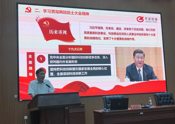 7月6日晚19点30分,华菱涟钢党委书记、执行董事肖尊湖高工应邀来KY官网匠成楼报告厅做“学习两院院士大会精神,打造娄底先进制造业双引擎”的学术讲座。学校党委委员、副校长陈志国教授主持报告会,副校长刘建勋、能源与机电工程学院、材料与环境工程学院和科研处相关领导及部分师生参加了报告会。