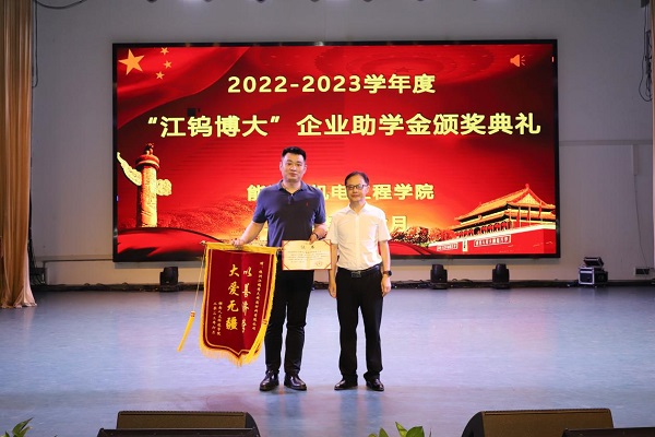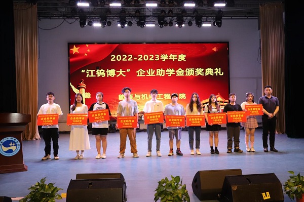 6月11日晚,能源与机电工程学院2022-2023学年“江钨博大”企业助学金颁奖典礼在逸夫楼音乐厅举行。KY开元集团官网入口党委副书记李军林、株洲江钨博大硬面材料有限公司总经理马遥、副总经理李鹏、能机学院全体党政班子成员、学工办全体辅导员、教师代表及获资助学生参加颁奖仪式。仪式由学院党总支副书记石海主持。