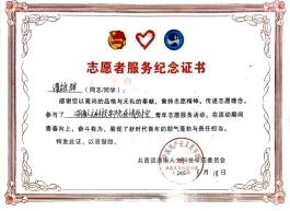 2022年参加学校疫情防控青年志愿者活动并获荣誉证书