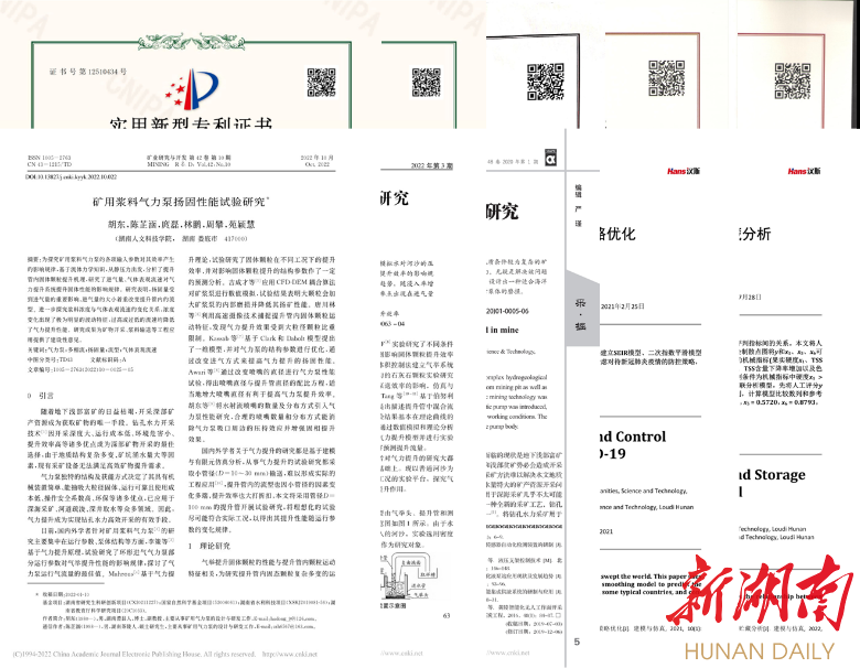 “吾非千里马,然有千里志。旦旦而为之,终亦成骐骥。”2020年9月,他怀着对科研的热爱与憧憬,在就业后以优异的成绩考上硕士研究生重返母校继续深造。经历过理论与实践升华的他,更加刻苦地汲取知识。他敏而好学,不耻下问,积极参加科学研究项目,他经常泡在实验办公室反复摸索,大量翻阅国内外文献,主动与老师、同学们探讨,沉浸式的遨游科研之海。付出必有回报,他以优异的学习成绩名列全学科第二,2021年主持的“疏浚用它激振荡气力泵理论及应用研究”研究生创新项目获省级立项、2020年12月荣获“湖南省第五届研究生数学建模大赛”省级三等奖、 2022年荣获“第八届湖南省互联网+大学生创新创业大赛”省级三等奖,并公开发表《矿用浆料气力泵扬固性能实验研究》等学术论文5篇、专利5篇。他同时热心帮助同学们攻克在专利论文撰写和实验操作上的各种“疑难杂症”,同学们常说“牛哥,过来帮帮忙!”