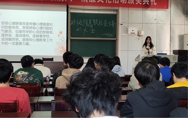 袁嘉炜老师就信息联络员工作职责、如何识别心理危机,怎样在班级开展心理预警工作向同学们做了阐述,强调信息联络员要自觉承担情报员的职责,及时上报;其次介绍本学期学校新增的成长辅导室,最后对本学期心理健康教育重点活动做了提前预告和工作部署。