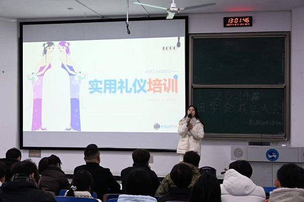 会上,辅导员尹雨牧为学生们带来了一场精彩的实用礼仪培训课程。从仪容仪表、语言沟通、见面礼三个维度,深入浅出地向我们展示了提升个人形象的有效方法。并教授了如何通过恰当的语言来提升人际交往的效果。帮助团总支学生会成员更好地理解礼仪在工作与生活中的重要性,并在实际应用中展现出更加得体和专业的形象。