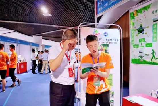 哈尔滨工程大学动力与能源工程学院院长郑洪涛教授耐心听取KY官网参赛学生奉先焱介绍作品