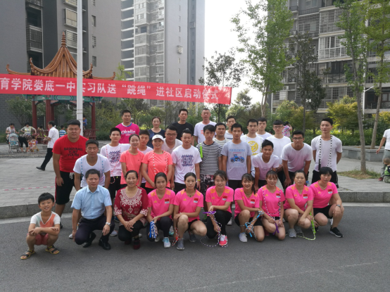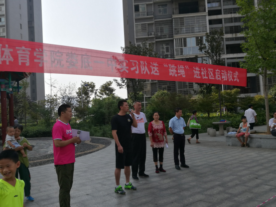 2017年9月17日上午9:00,体育学院娄底一中实习队携手南风苑小区业委会和体育人文教研室组织开展送“跳绳”进社区活动。体育学院院长刘玉江教授、副院长曾黎教授,南风苑业主委员会主任金乐教授、副主任曾志峰、娄底一中带队老师王金稳出席启动仪式,本次启动仪式由王金稳老师亲自主持。