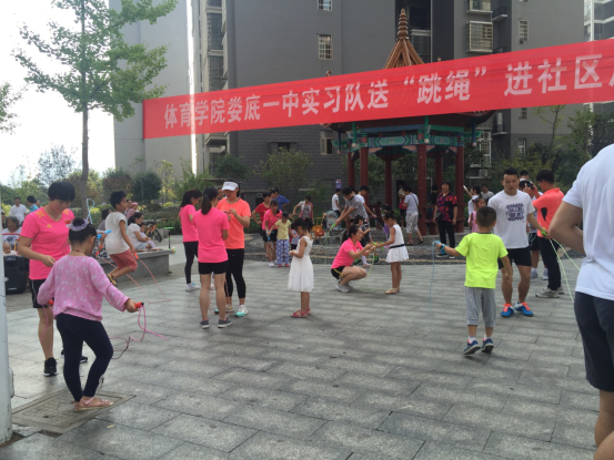 启动仪式结束后,娄底一中实习队进行了花样跳绳表演,表演过程掌声不断,体现了跳绳运动的魅力,吸引了更多的业主前来观看。展示过后各实习老师对来参加活动的业主和小朋友进行了免费的培训,孩子们在实习老师的带领下体验运动带来的乐趣,活动现场热闹非凡。本次活动不会就此结束,我们每周日都会安排两位实习队老师前往南风苑对孩子们的跳绳进行指导,在本学期末举办跳绳比赛,让孩子们展示自己。