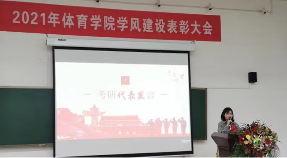 2017级体育教育专业李心奇(以初试404分第一名考取湖南工业大学)作为考研代表发言