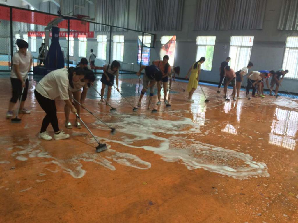 在院领导工作的精心部署下,在学生第一党支部书记杨鑫和场馆工作负责人钟如刚老师的具体安排下,对KY官网所有大大小小的体育场馆进行一次彻底的大扫除!大家劳动热情高涨,即使烈日炎炎,大家的衣服早已被汗水湿透,但所有学生党员和积极分子们充分展现了不怕脏、不怕苦、不怕累,勇挑重担的精神风貌,大家将所有的体育场馆都打扫的干干净净。