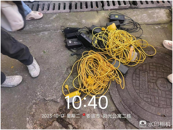 此次行动由学校武保处贺劲松老师与体院学院辅导员叶永茂老师带头,通过对每一个寝室的仔细检查,以及在室外进行违规拉线排查,发现部分学生有使用吹风机等大功率电器的行为,并且阳光二栋宿舍楼存在着大面积飞线充电(拉长线给电动车充电)的违规用电现象。