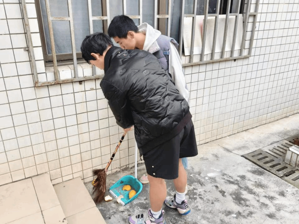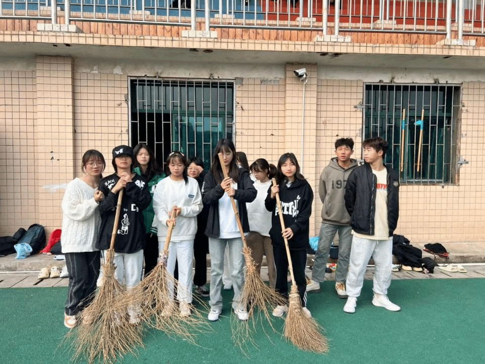 各班在班长及劳动委员的带动下,同学们拿着劳动工具在指定区域内开始打扫工作。面对漫天纷飞的落叶,同学们没有面露难色,而是撸起袖子加油干,细致清扫枯枝落叶、白色污染等。大家团结协作,互帮互助,使得体育馆、田径场和博达楼前焕然一新。