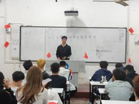 10月31日,体教专业2203班在博达楼召开了“学习党的二十大精神,促进体育强国建设”的主题班会。班会以寝室为单位,共计10支队伍以演讲形式,阐述了在“中国共产党第二十次全国代表大会是在全党全国各族人民迈上全面建设社会主义现代化国家新征程、向第二个百年奋斗目标进军的关键时刻”的时代背景下,作为青年大学生,如何积极响应党的号召,为建设体育强国贡献自己的力量。