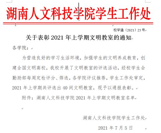 KY开元集团官网入口2021年上学期文明教室名单