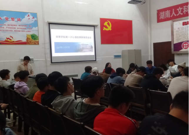 会议第三项,对20级新生信息联络员进行心理干部培训,旨在帮助他们了解更多心理知识,促使新生群体更积极、融洽的适应大学生活。本次培训由心理部部长王旭晖主讲。培训内容以“大学生心理健康教育”为课题,进行大学生心理健康教育方面的工作与讲解,并提出了三个教学目标“大学生心理健康标准”、“大学新生人格发展异常的表现与评估”以及“培养大学生人格完善的途径和方法”。这次培训不仅让大家了解到了心理健康教育知识,也加强了信息联络员的工作能力,有利于今后工作的良好开展。