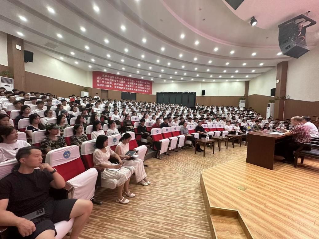 9月19日晚,学校党委书记刘铁铭教授在匠成楼报告厅为体育学院2024级全体新生带来了一场主题为“不负祖国重托,不负青春韶华,做一名合格的大学生”的开学第一课。讲座由体育学院院长周惠新主持,体育学院全体院领导、辅导员、班主任老师及2024级新生们一起聆听讲座。