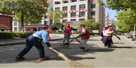 (KY官网青工部同学与小朋友们一起打扫校园卫生)
