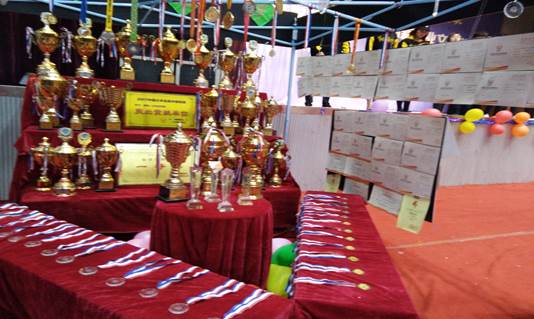为此体育学院开展创新创业文化节展览会出展了体育学院学生参赛所获得的奖杯、奖牌、荣誉证书等荣誉奖项,并献上了体育学院16级体育舞蹈班自主手工制作的比赛服饰,以及展示了体育学院优秀科研成果。这充分体现体育学院全体师生自我设计,自我创新的精神风貌。也有利于传扬体育精神文化建设。展览会期间体育学院院长刘玉江莅临活动现场进行考察,并得到其他院级领导老师们的广泛认可。