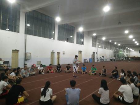2016年9月20日晚7点体育学院团总支在风雨田径棚举行了一场别开生面的素质拓展活动。由素拓师代天鑫带领着新干事素拓。团副和团总支各部长在旁观看干事们素拓的表现情况。