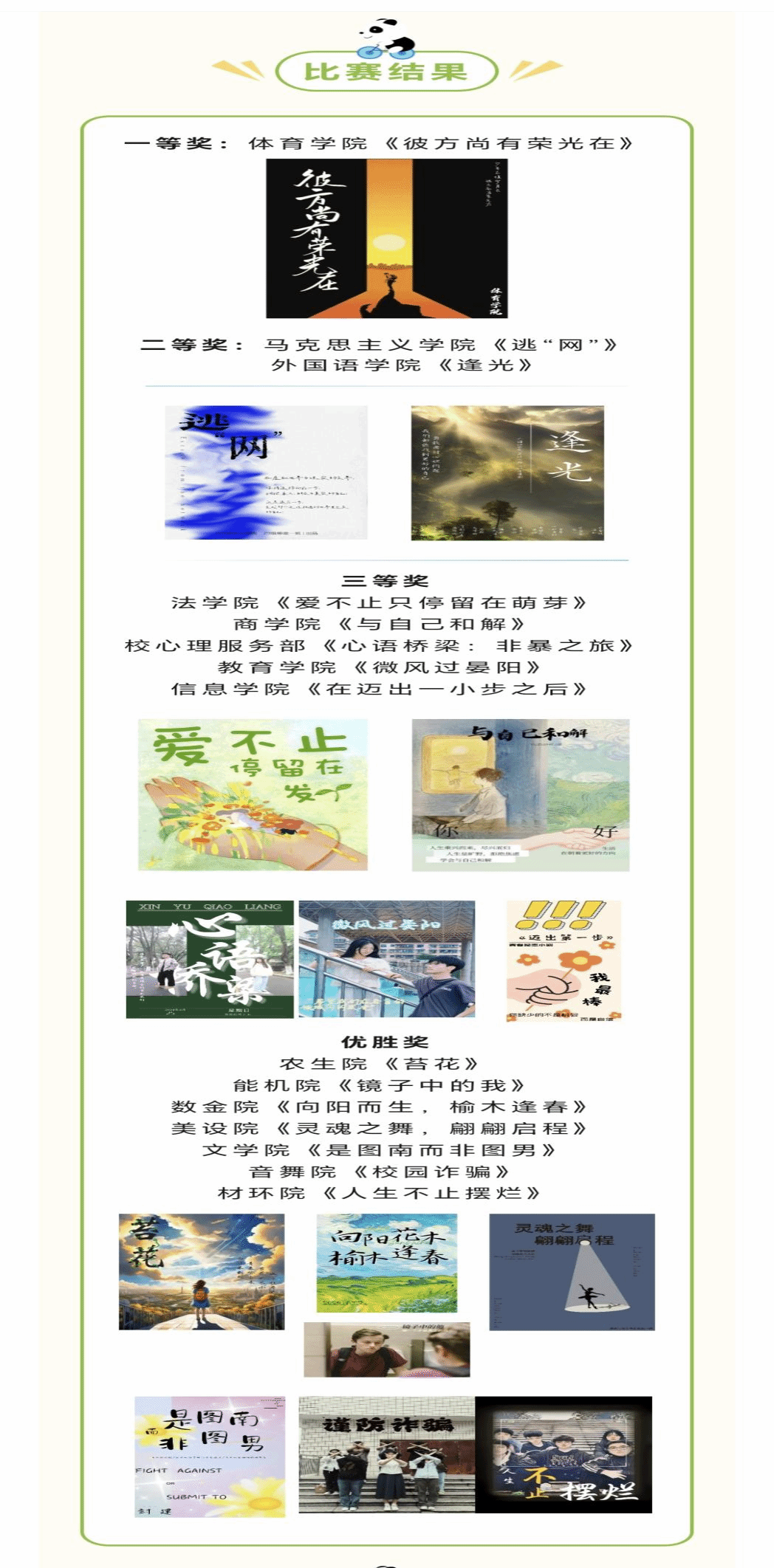 经过层层角逐,体育学院由闵婷老师指导、心理部干部闫馨宇、曾湘沂编写的心理剧本《彼方尚有荣光在》荣获心理情景剧剧本大赛一等奖。这部作品紧扣毕业生生活实际,结合KY官网毕业生就业指导和危机干预等工作,展现了当代大学生的青春风貌,宣扬了信息联络员的重要作用,赢得评委老师一致好评。