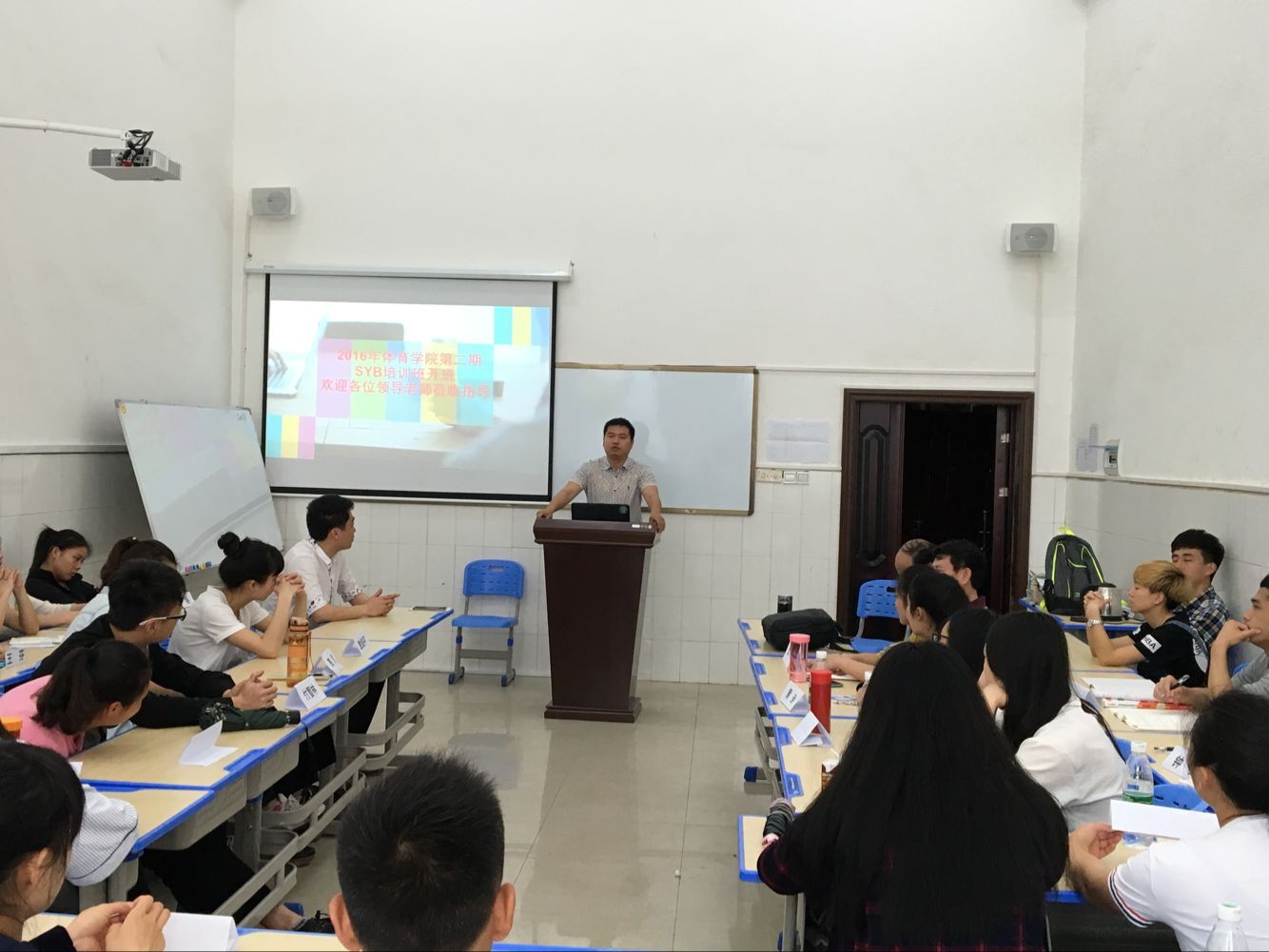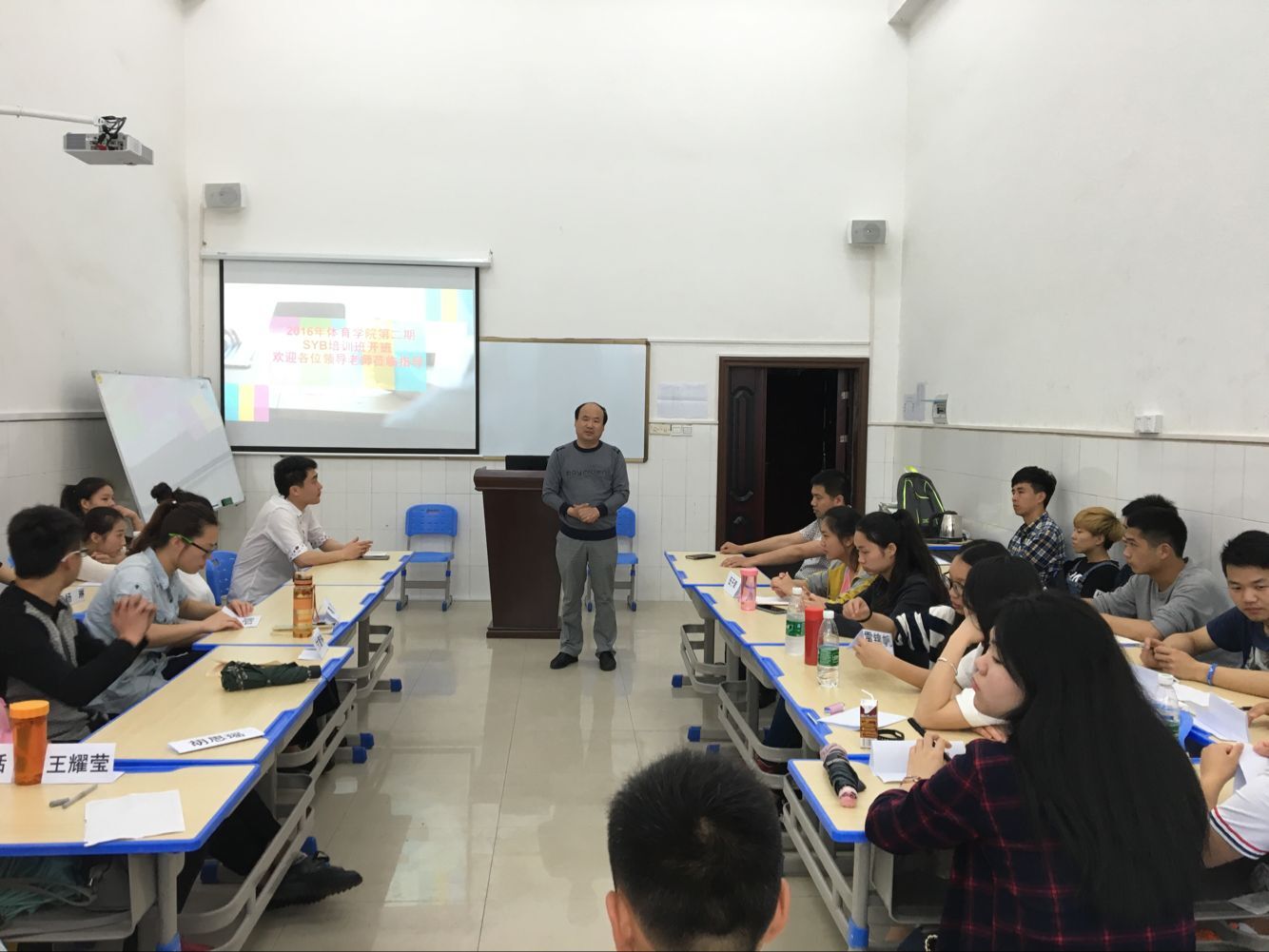 2016年体育学院第二期SYB创业培训班开班仪式于5月5日上午8::30在体育馆306教室举行,参加开班仪式的领导老师有:招生就业中心刘盛愚主任、体育学院蒋毅书记、谢嘉副书记、能机学院谭书记以及班主任杨鑫老师。仪式上,领导老师们一一发言、对KY官网学生创业给予了很大的期望和鼓励,在此感谢所有的领导老师对KY官网的大力支持!