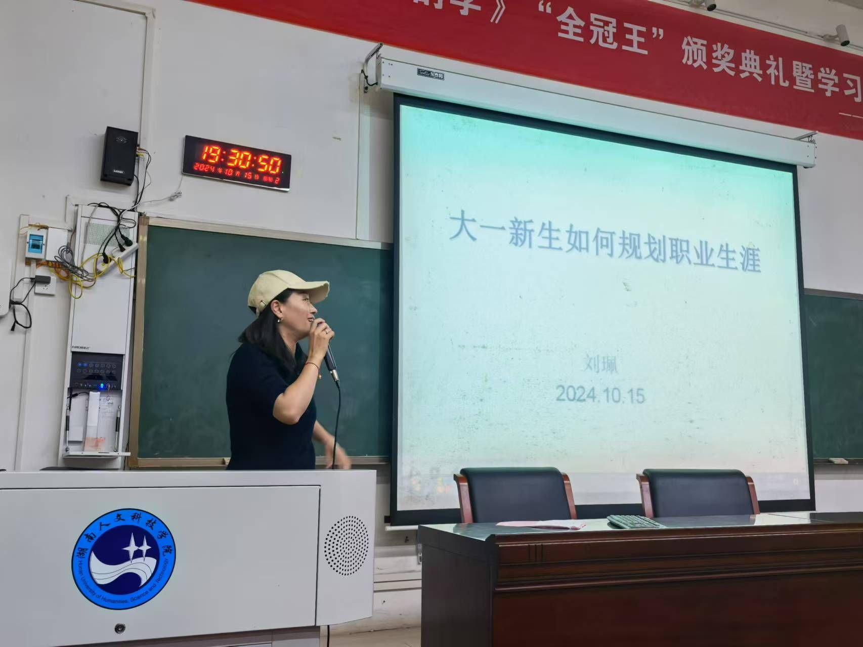 在讲座中,学院就业专干刘珮老师以生动的案例和丰富的教学经验,向新生们介绍了大学的学习方法和技巧,鼓励他们积极参与课堂讨论,勇于探索未知领域。此外,还就当前就业市场形势和职业发展前景进行了深入剖析,引导新生们树立正确的职业规划意识,提前为未来的职业发展做好准备。