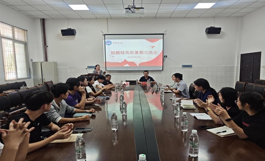 为凝聚班级力量、分享暑期感悟、明确学习方向,2025年9月27日下午,体育学院鲲鹏实验班在学院会议室召开暑期学习总结会。院长周惠新教授、副院长董植寿博士,杨志华博士、杨虹博士、徐异老师、杨萧老师、刘珮老师与全体同学参会。