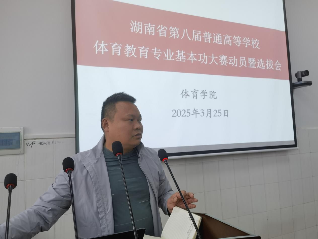 会议伊始,董植寿副院长介绍了大赛的基本情况,强调此次赛事是检验全省高校体育教育专业教学水平的重要平台,也是学院展示育人成果的窗口。他要求全体师生以“科学规划、严格要求”为原则,对标大赛规程,扎实推进备赛工作。