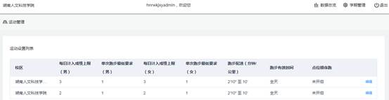 2.体育学院:单次跑步计入成绩男生女生为1公里;男女生每日计入成绩上限为3公里;要求学生每周运动最少3次;