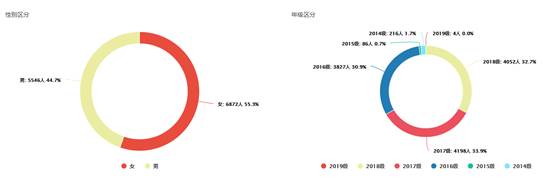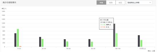 2. 男生女生(12418人)(按照累计注册人数核定,含了大一大二大三的人数,实际参加跑步约为:12418-4129=8289人):完成 》90公里1821人;完成70-90公里672人;完成50-70公里776人;完成0-50公里3206人;完成《0公里5942人(按未计入成绩计算,含了2014级216人,2015级86人,2016级3827人,小计4129人)。