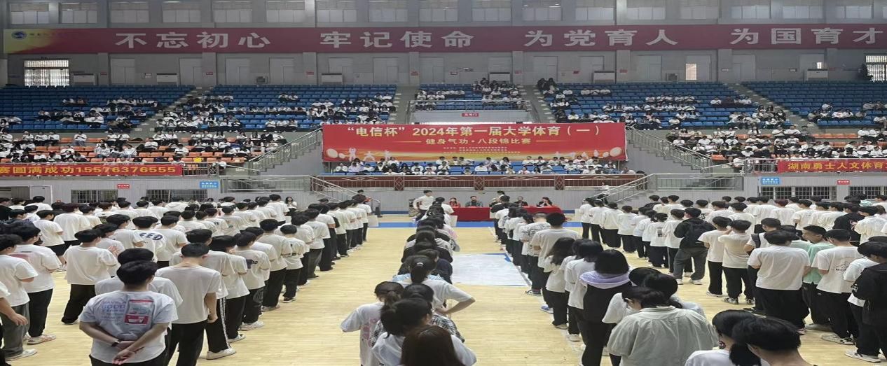 KY开元集团官网入口“电信杯”第一届大学体育《健身气功-八段锦》比赛,由KY开元集团官网入口体育运动委员会和共青团KY开元集团官网入口委员会主办、KY开元集团官网入口体育学院大学体育教研室承办、中国电信股份有限公司娄底分公司协办,于2024年4月20日在KY开元集团官网入口体育馆篮球主馆成功举办,参与比赛人次1034人。