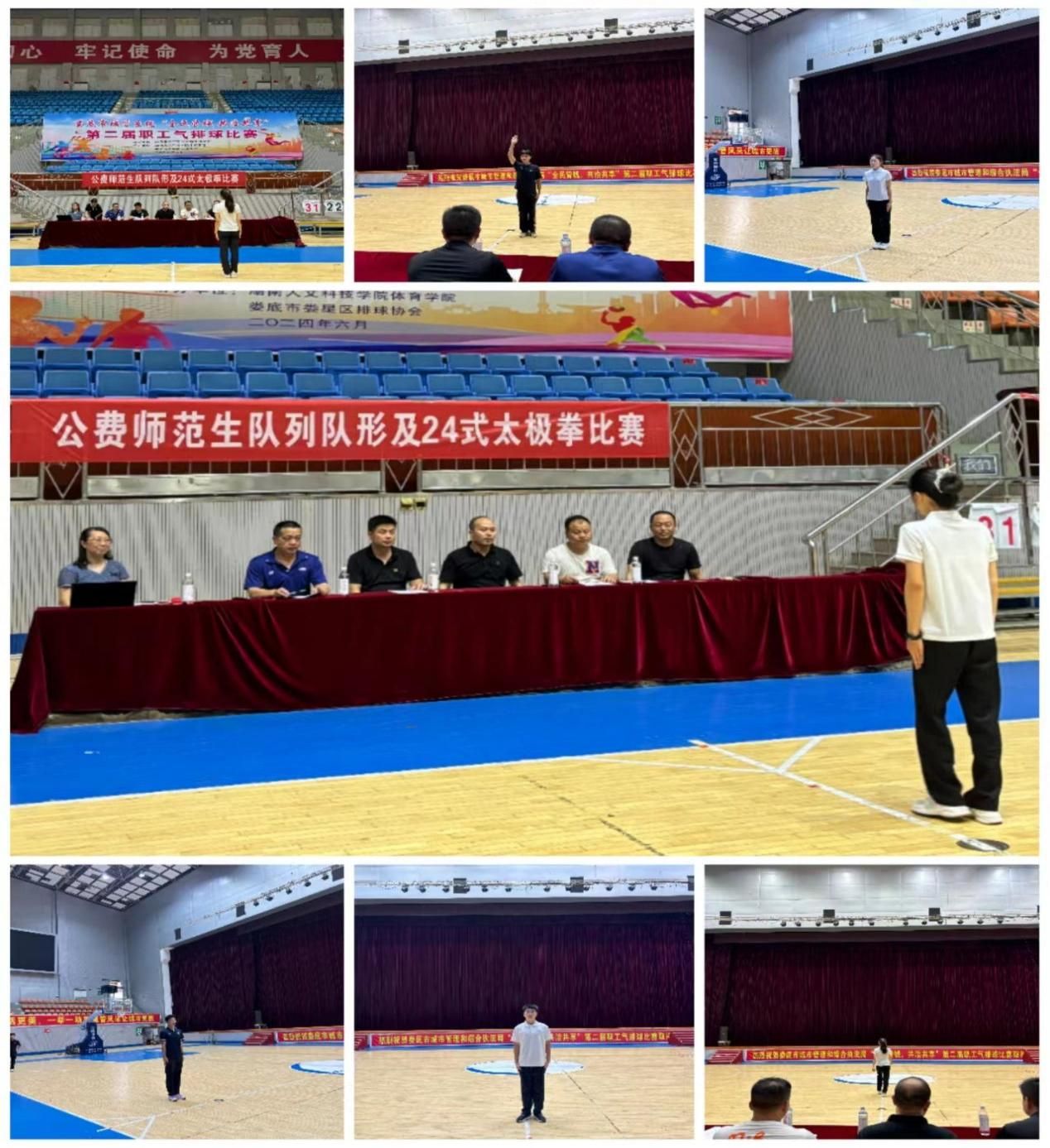 盛夏七月,热情如火。体育学院体育馆内,一场别开生面的体教专业公费师范生队列队形及24式太极拳比赛热烈展开。队列队形作为体育教师必备的基本技能,对于构建高效、有序的体育课堂至关重要。24式太极拳的掌握,不仅有助于学生健身需求的满足,更能提升教学质量,促进学生的身心健康,传承与弘扬我国的传统文化。本次比赛汇聚了17位优秀选手,他们同台竞技,充分展示了自己在队列队形和24式太极拳方面的训练成果。