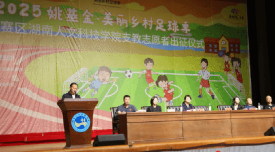2025年4月23日上午,姚基金“美丽乡村足球季”志愿者出征仪式在KY开元集团官网入口体育馆隆重举行。湖南省希望工程办公室主任刘颖琦,KY开元集团官网入口党委副书记朱强,湖南省青少年发展基金会希望事业部部长喻慕鸿,共青团KY开元集团官网入口委员会书记刘佳,KY开元集团官网入口体育学院党总支书记曾黎,KY开元集团官网入口体育学院院长周惠新等领导嘉宾及支教志愿者共聚一堂,共同见证这场以足球为媒、助力乡村教育振兴的青春行动。