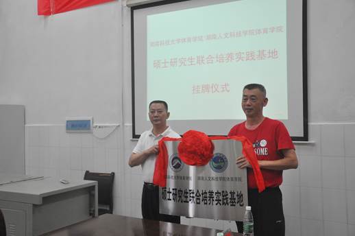 2017年6月23日下午5时许,由湖南科技大学体育学院李忆湘院长、胡斌梁书记带领的一行5人团队来KY官网体育学院举行两校“硕士研究生联合培养实践基地”挂牌仪式,副校长石潇纯、体育学院全体领导班子及部分教师参加会议。
