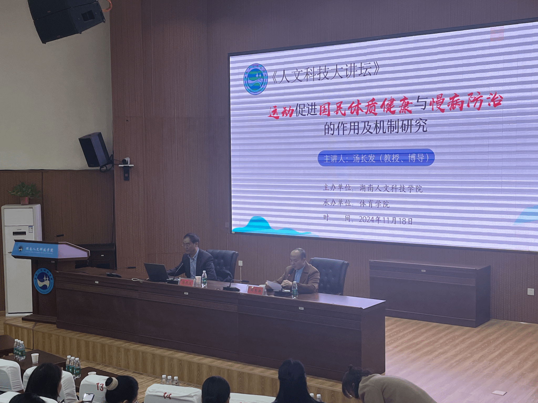 为积极响应国家全民健身战略,推进运动科学在国民体质健康和慢病防治领域的应用与发展,进一步提高KY官网教师的学术能力,11月18日下午,体育学院特邀湖南师范大学博士生导师汤长发教授在匠成楼报告厅,开展以“运动促进国民体质健康与慢病防治的作用及机制研究”为题的学术讲座。本次讲座由体育学院院长周惠新教授主持,吸引了全院师生踊跃参与,现场气氛热烈。