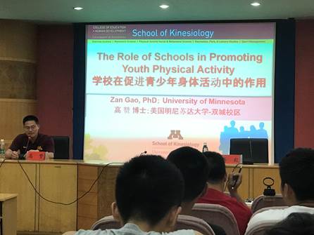 2019年6月21日上午9点整,美国明尼苏达大学终身教授、国际华人体育与健康学会责任主席应邀来KY官网体育学院做题为《学校在促进青少年身体活动中的作用》的学术报告,会议由KY官网党总支书记蒋毅教授主持,体育学院的部分教师与2017、2018级体育教育专业学生参加了报告会。