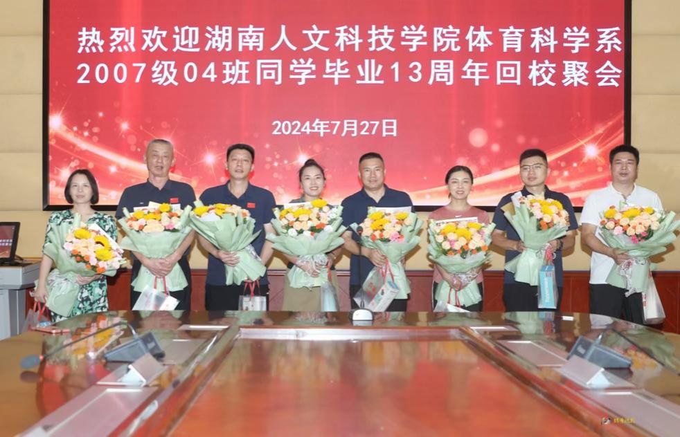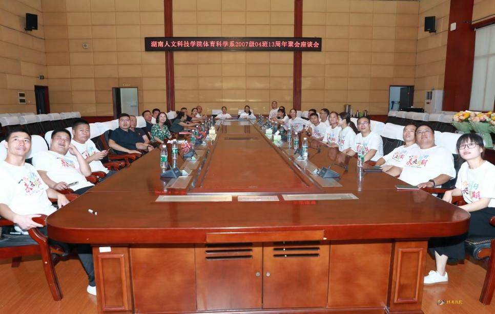 7月27日,2007级体育教育专业4班13周年聚会座谈会在图书馆第一会议室举行,学校校友联络中心主任刘莉、学院党总支书记曾黎、副院长陈勤、党总支副书记肖毅、原院长刘玉江、王金稳、谭永平、李建花、徐霞等老师与20余位校友在座谈会上畅谈。